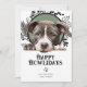 Happy Howlidays American pit bull Dog Christmas Holiday card from Ricaso - designed with a wonderful typography Happy Howlidays text to the front - a fun dog themed holiday card, your furry family member deserves to send out his own holiday greetings .. easy to add your own text and photo - featuring a fun and bold paw print pattern to the back