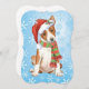 Celebrate the holiday season with a cute Basenji puppy wearing a Santa hat and scarf amid snowflakes with the words, Happy Howlidays on the back! Great for Basenji-loving family and friends.
