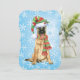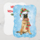 Celebrate the holiday season with a cute Belgian Malinois puppy wearing a stocking hat and scarf amid snowflakes with the words, Happy Howlidays on the back! Great for Malinois-loving family and friends.