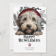 Happy Howlidays Bergamasco Dog Christmas Holiday card from Ricaso - designed with a wonderful typography Happy Howlidays text to the front - a fun dog themed holiday card, your furry family member deserves to send out his own holiday greetings .. easy to add your own text and photo - featuring a fun and bold paw print pattern to the back
