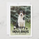 A festive and fun holiday photo card for new pets and pet lovers features a favorite picture of your furry best friend with modern and fun "Happy Howlidays" dog-themed overlay wording. Personalize the modern black text with your pup's name, family name, and the year. Cute paw prints accent the handwritten style wording. Playful black and white dots dress up the back of the card.