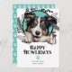 Happy Howlidays Collie Sheepdog Pet Dog Christmas Holiday card from Ricaso - designed with a wonderful typography Happy Howlidays text to the front - a fun dog themed holiday card, your furry family member deserves to send out his own holiday greetings .. easy to add your own text and photo - featuring a fun and bold paw print pattern to the back