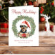 Get into the holiday spirit with our Happy Howlidays Christmas Design. This fun and festive design features a cute watercolor dog wearing a Santa hat, surrounded by a Christmas floral wreath. The perfect way to spread some holiday cheer, this design is customisable. So whether you're looking for a family Christmas card, a fun office party invite, or a way to spread some holiday cheer to your friends and coworkers, this design is the perfect choice. So get creative and personalise your holiday cards today!