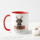 Happy Howlidays Dachshund Personalised Christmas Coffee Mug features a cute dachshund dog wearing antlers with Christmas gifts and the text "Happy Howlidays (name)" in modern script typography. Perfect for Christmas and the holidays as gifts for family and friends, dog lovers, dog mum, dog dad, dog sitter and more. Personalise by editing the text in the text box provided. Created by Evco Studio www.zazzle.com/store/evcostudio