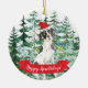 Cute dated English Pointer Dog Christmas ornament set on a pine & spruce tree background with the holiday message "Happy Howlidays" . Visit our shop to view a large assortment of dog breads
