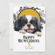 Happy Howlidays Japanese Chin Dog Pet Dog Christmas Holiday card from Ricaso - designed with a wonderful typography Happy Howlidays text to the front - a fun dog themed holiday card, your furry family member deserves to send out his own holiday greetings .. easy to add your own text and photo - featuring a fun and bold paw print pattern to the back