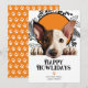 Happy Howlidays Miniature Bull Terrier dog. Pet Dog Christmas Holiday card from Ricaso - designed with a wonderful typography Happy Howlidays text to the front - a fun dog themed holiday card, your furry family member deserves to send out his own holiday greetings .. easy to add your own text and photo - featuring a fun and bold paw print pattern to the back designed in black and white