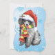 Celebrate the holiday season with a cute Miniature Poodle puppy wearing a Santa hat and scarf amid snowflakes with the words, Happy Howlidays on the back! Great for Poodle-loving family and friends.