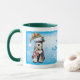 Celebrate the holiday season with cute Miniature Schnauzer puppies wearing stocking caps and matching scarves amid snowflakes and the words, Happy Howlidays! Great holiday gift idea for Schnauzer-loving family and friends.