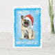 Send Christmas greetings with this card of a cute Norwegian Elkhound puppy wearing a Santa hat amid snowflakes and the words, Happy Howlidays! Great for elkhound-loving family and friends. Have Happy Howlidays!