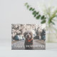 Bordered with a flurry of white snowflake and paw print graphics, send this "happy howlidays" postcard out this Christmas season and share your fur baby's face with loved ones and friends. Your pet is part of the family, after all! Customize this card with a horizontal format photo of your pet (or of the whole family together) and name text of your choice on the front. Add a longer custom message of cheer to the back along with your return address and send a more budget friendly Christmas card with cheaper postage.