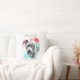Cute Christmas themed pillow for dog lovers featuring a hand painted illustration of a pitbull dog with a santa hat. The text above says "happy howl-idays."