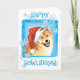 Send Christmas greetings with this card of a cute and very happy Shiba Inu wearing a Santa hat amid snowflakes and the words, Happy Howlidays! Great for Yorkie-loving family and friends. Have a Happy Howliday!