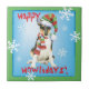 Celebrate the holiday season with a cute Smooth Collie puppy wearing a stocking hat and scarf amid snowflakes and the words, Happy Howlidays! Great holiday gift idea for Collie-loving family and friends.