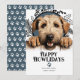 Happy Howlidays Soft Coated Wheaten Terrier Dog Pet Dog Christmas Holiday card from Ricaso - designed with a wonderful typography Happy Howlidays text to the front - a fun dog themed holiday card, your furry family member deserves to send out his own holiday greetings .. easy to add your own text and photo - featuring a fun and bold paw print pattern to the back designed in black and white