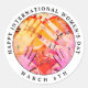 Happy International Women's Day 8th March Classic Round Sticker. Celebrate the sisterhood this International Women's Day on March 8th. Spread a message of love and support with this pretty "hands on" International Women's Day sticker. Display this bright and happy symbol of female energy on this special day for women all over the world. Perfect for yourself, your mum, your sister, and your besties too. All text is fully customisable, just hit the "Customise It" button to change things up if you wish. Show yourself and your sisters some love with this message of female solidarity. Embrace the day and own it, girl, and have a Happy Women's Day!