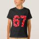 The t-shirt feels and looks great quality, a good thick cotton. It will be a little big for my son, but that means he will be able to wear it and not out grow it too soon. The print was as described on the order when personalised. True size, shape and colour T-shirt- thanks.