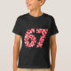 The t-shirt feels and looks great quality, a good thick cotton. It will be a little big for my son, but that means he will be able to wear it and not out grow it too soon. The print was as described on the order when personalised. True size, shape and colour T-shirt- thanks.