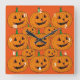 Happy Jack o Lantern Cartoon Pattern Square Wall Clock