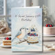 Created to celebrate a 95th birthday in January, this card captures a peaceful winter moment with a Red-breasted Nuthatch gently helping decorate a vanilla cake topped with blueberries and raspberries. Hand-painted in watercolor and pen, it blends nature, warmth, and artistic detail to mark a meaningful milestone.