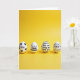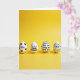 This design shows a wide field of bright yellow that feels like sunshine, with four smooth white eggs lined up across the lower third like friends gathered close 🌷. On the left egg, the word “YEAH” appears in black with a few tiny black hearts sprinkled around it, like a confident cheer meant for someone special. The next egg carries the words “YOUR PERSONAL” in black, set under a tidy half-arc of small black dots that reads like a soft, attentive gesture. The third egg is packed with overlapping black letters, where you can pick out bits like “HAPPY” and “JOY,” creating the look of excited chatter between close companions 🐰. On the right, a simple smiling face in black sits centred on the egg, with short radiating lines that suggest a warm grin aimed at the group. The high-contrast black marks stand out sharply against the white eggs, and the even lighting makes their rounded surfaces look smooth and glossy. The text sits centred on each egg, with the hearts and dot-arc acting like small decorations above and around the lettering, all set against the uninterrupted yellow background.