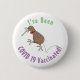 Happy jumping kiwi with bow tie cartoon design 6 cm round badge