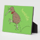 Happy jumping kiwi with bow tie cartoon design plaque