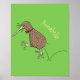 Happy jumping kiwi with bow tie cartoon design poster