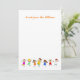 A note from teacher personalised note card with envelope. Decorated with a colourful illustration of happy kids jumping for joy. It's personalised with a heather line containing the teacher's name and a short introduction to the note. Customise it with your own name and text. This cute stationary will help you communicate with your students and give them and their parents feedback and encouragement in a positive, cheerful way.