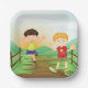Happy Kids Playing Outdoors Paper Plate