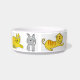 I love the pet bowls I bought for my 3 Granddogs when they come over my house. They are the perfect size to feed them when they are here for a visit. The design of their names on the bowls is great!