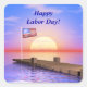 Stickers with my computer artwork of an end-of-summer scene of a dock on the lake with the American flag and a setting sun. Customisable text says "Happy Labour Day!"