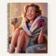 Happy Lady with Yarn and Coffee Notebook