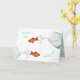 Pisces Gold Fish funny leap year "Happy Birthday" card with aqua and orange popular font typography details which you can easily customise. Jumping fish can be interpreted as astrology Pisces symbols, or just a humourous play-on-words greeting centred on the particular year's Leap Year.