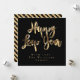 Happy Leap Year Typography Elegant Black and Gold, Faux Gold Foil Text and Stripes on Black Background, Modern Script, Chic New Year's Card