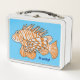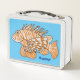 This is a standard metal lunchbox that appears to work just fine. We designed this box ourselves with an uploaded photo and custom text on the front and back. It looks absolutely beautiful except the front of the lunchbox is not centered like it shows in the photo. The print borders don't align with the inset flat part of the box where the preview photo online showed it perfectly centered in there. The back looks nice and centered though.