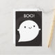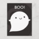 A kawaii ghost on a spooky wooky swirly black background. Great for Halloween.