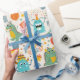 An Adorable Kids Pattern Wrapping Paper Of Partying Birthday Monsters