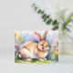 The image features a small and cheerful little brown bunny in a peaceful meadow.