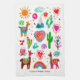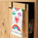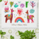 A cheerful folk art painting featuring llamas, cactus, sunny skies, flowers and a hopeful rainbow. This quality kitchen towel is customisable with your