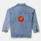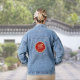 This denim jacket can help you celebrate the Chinese Lunar New Year of 2026, which is the zodiac Year of the Horse. The graphic appears on the back of the shirt only. Commemorate the prosperity and good fortune of the year with this gold look scrollwork horse and clouds on a deep red background, encircled in gold. The phrase "Year of the Horse" appears in a festive typeface, but you can edit the text if you want.
