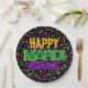happy mardi gras confetty black paper plate