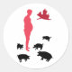 Happy meal, vegetarian theme sticker- a fat man and pink angel pig , art theme to make you think about not eating animals.