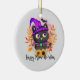 Happy Meow-o-ween -Black Witch Cat Ceramic Tree Decoration