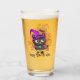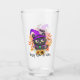 This adorable Halloween drinking glass features a black cat wearing a purple witch hat alongside the playful phrase “Happy Meow-o-ween.” Perfect for cat lovers and fans of spooky season with a cute twist, this whimsical design blends Halloween magic with feline charm for a fun, festive vibe.