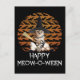 Happy Meow-o-ween! This funny pun Halloween holiday accessory is a great gift for men, women, teens & kids who love cats & Halloween. Purr-fect to wear as part of a costume to a Halloween party or while trick-or-treating. If you love Fall, pumpkins, Halloween, witches and cats, this festive design is for you! Features a funny graphic of a tabby kitty wearing a witch hat and holding a broom, sitting in front of an orange spooky bat pattern.