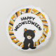 Happy Meowloween Black Cat Halloween Candy Corn Round Cushion