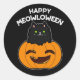 Happy Meowloween Funny Halloween Pun Dark BG Classic Round Sticker