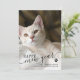 Instead of Late Christmas Cards, Send a Happy New Year Card with a Photo of Your Pet Cat and "Happy MEW Year" wording with a paw print in retro vintage script and typewriter font styles. Just upload your photo and personalise your names for a great holiday greeting card.