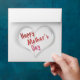 Modern and lovely paper cut illustration featuring a folded paper heart on a light bokeh background with falling red hearts and trendy painted script letters.